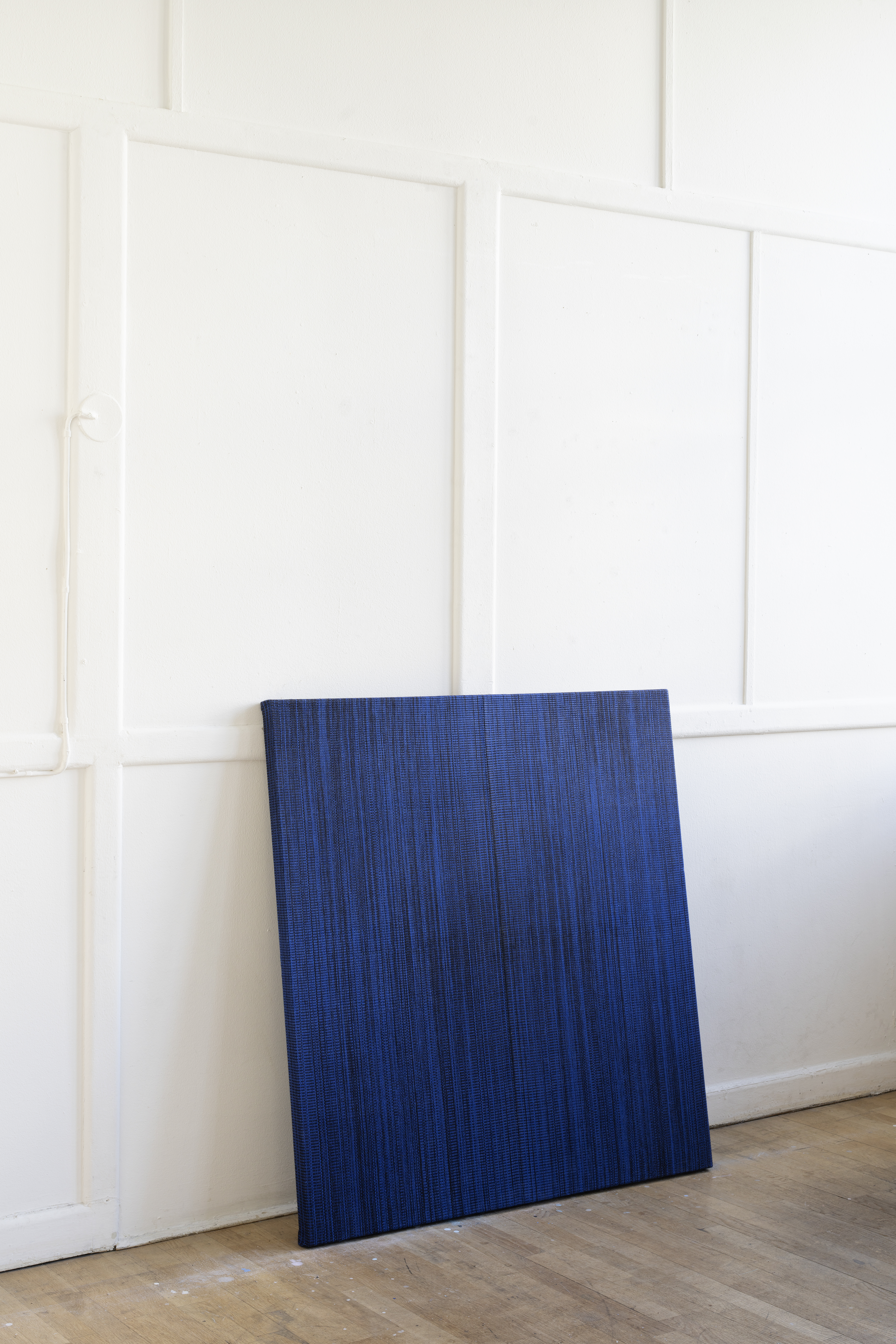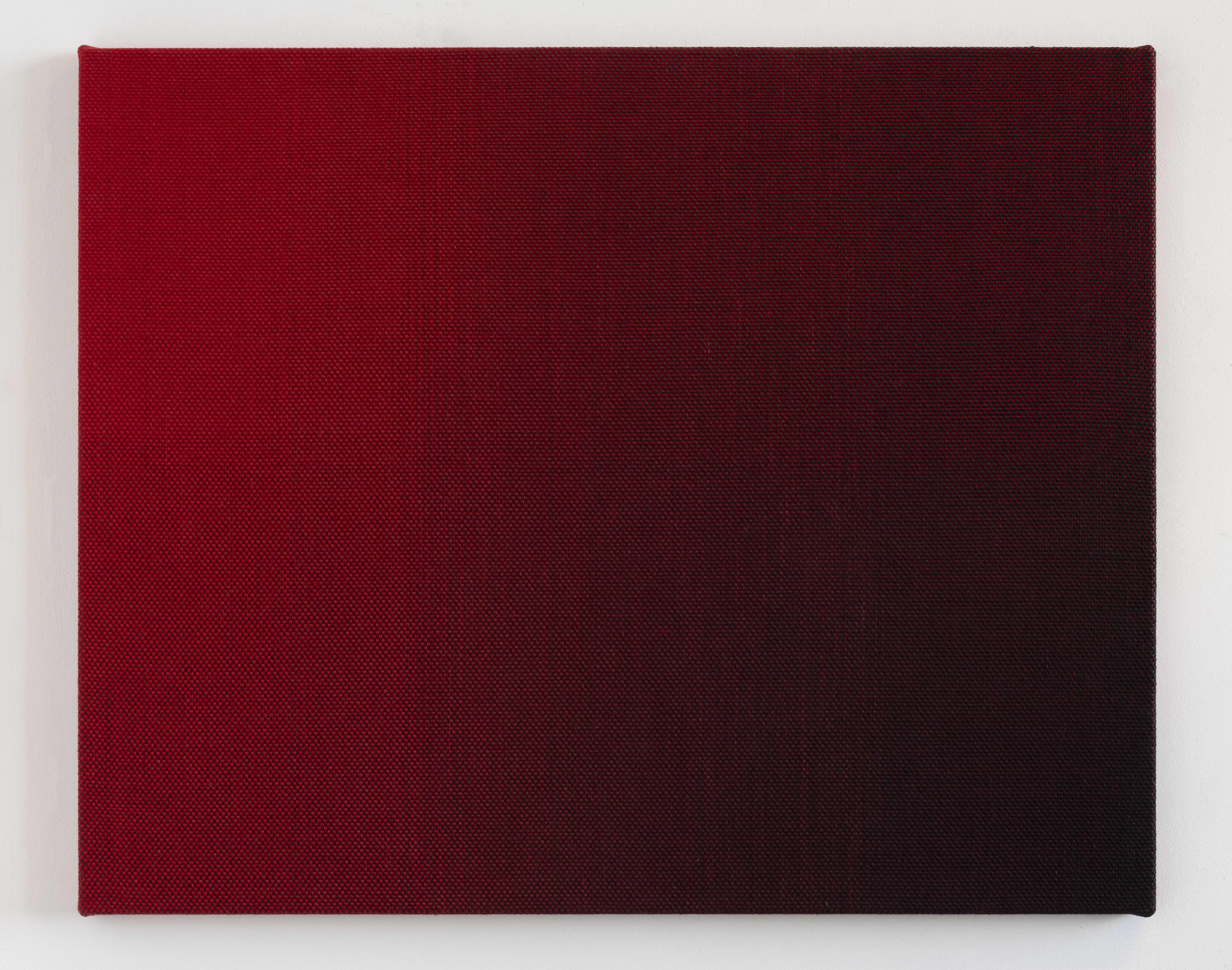 Hand-woven (tabby), hand-dyed linen, hand-dyed mercerised cotton. Installation view: Fleeting Moments of Intersection, Galleri KC, Gothenburg 2025. Photo: David Eng